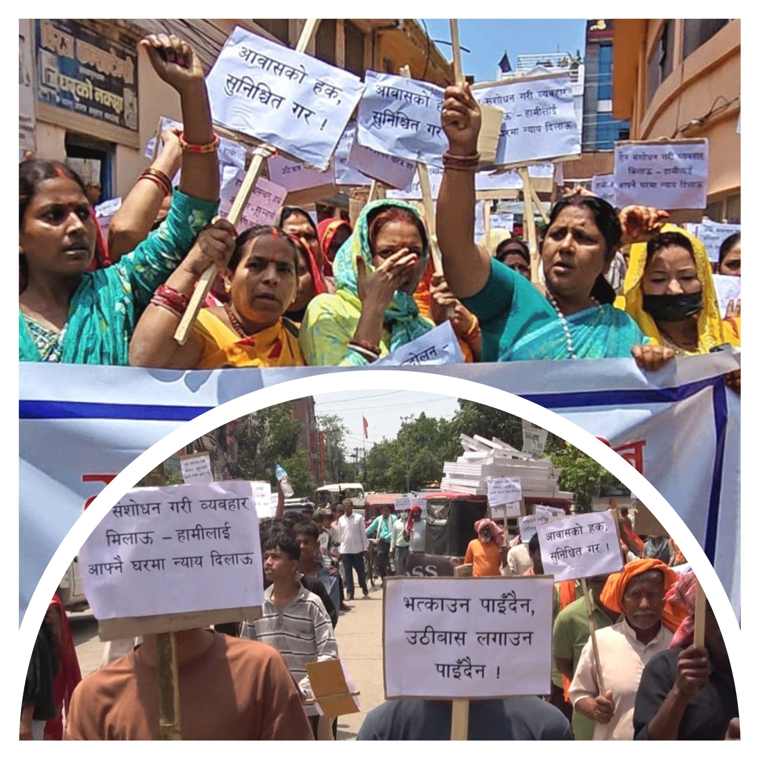 गुठी अधीनस्त जग्गामा वर्षौँदेखि घर बनाई बस्दै आएका उनीहरूले आफूहरूको पुनस्र्थापनाविना घर भत्काउन नमिल्ने भन्दै गुठी संस्थान, जनकपुरधाम उपमहानगरपालिका तथा जिल्ला प्रशासन कार्यालयअगाडि प्रदर्शन गरेका छन् ।